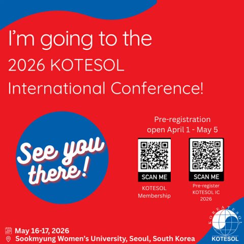KOTESOL 2026 International ConferenceAttending #KOTESOL2026? Grab this badge and let your network know you’ll be there! Share it on social media to connect with other participants, plan meetups, and build your conference community before you arrive. Share this page