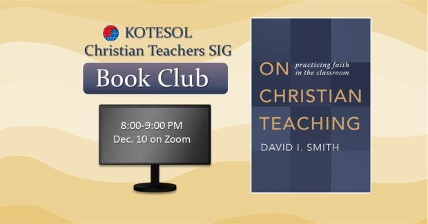 The Christian Teachers SIG book club will meet on December 10 to discuss chapter 10 of David Smith's On Christian Teaching. You can register here to receive the Zoom link: https://forms.gle/H6uBCULxesKQCVfp6.