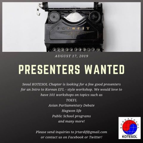 Seoul KOTESOL Chapter is hosting their first intro to Korean EFL workshop!