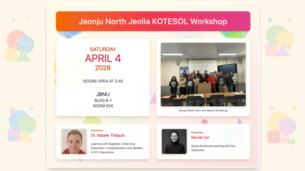 The goal is to equip participants with an understanding of SEL frameworks and practical ideas for their own classroom. Instructors teaching in any context (K-12, university, hagwon, etc.) are welcomed to attend. Participants are encouraged to bring a hard copy of a recent lesson plan they’ve taught.